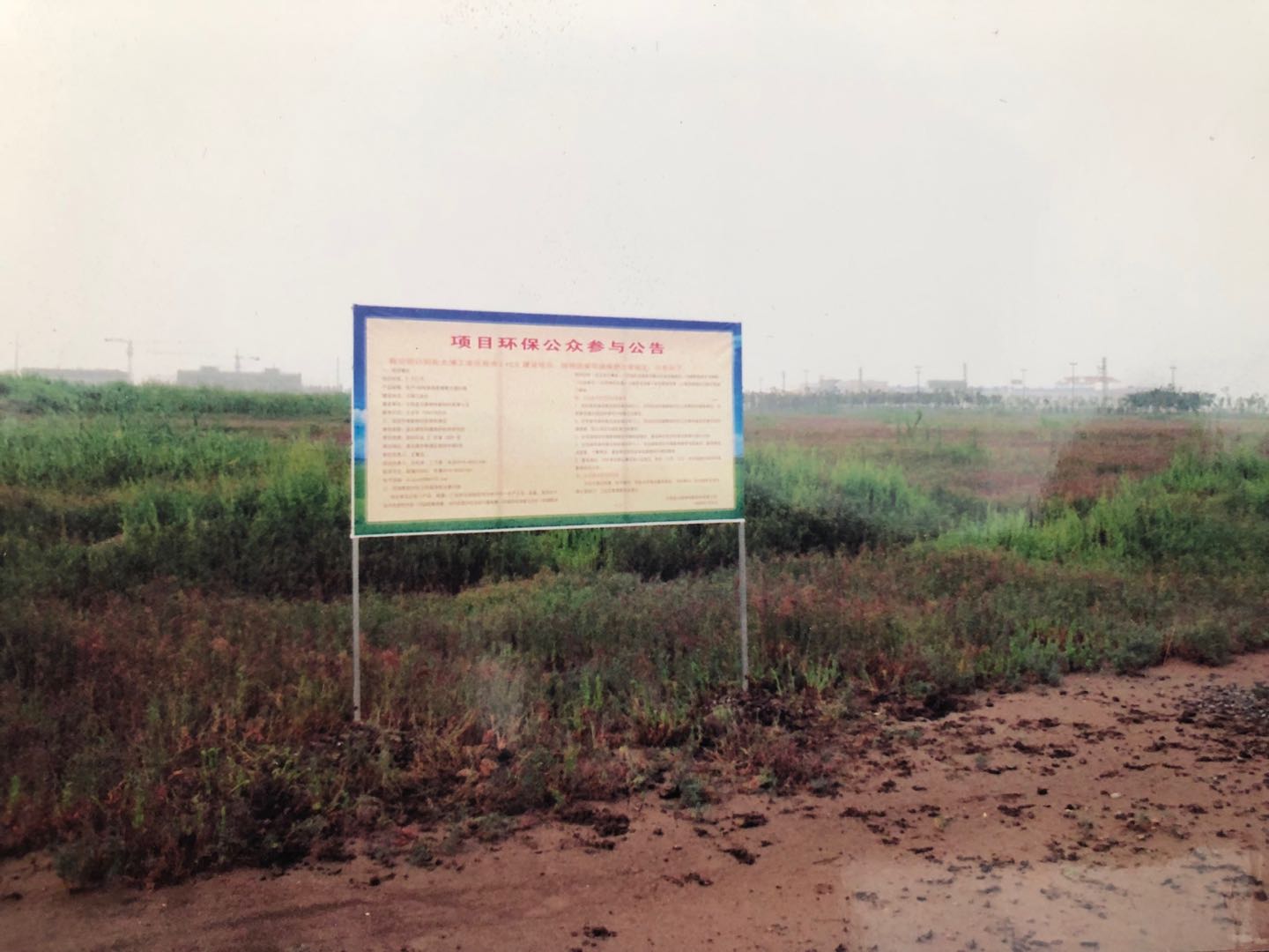 這是神特公司籌建時(shí)期的環(huán)評(píng)現(xiàn)場(chǎng)公示照片,是2008年8月底拍攝的。照片的重點(diǎn)部分是一個(gè)大牌子——項(xiàng)目環(huán)保公眾參與公告的牌子,位置大約在現(xiàn)在一期傳達(dá)室附近。做這樣的牌子是當(dāng)時(shí)環(huán)評(píng)的一個(gè)環(huán)節(jié),必須在建設(shè)場(chǎng)地進(jìn)行兩次公告,征求相關(guān)環(huán)境利益方的訴求。牌子的遠(yuǎn)方隱隱約約看見(jiàn)有些工廠(chǎng)和電力桿塔,牌子附近生長(zhǎng)著茂密的堿蒿,一團(tuán)團(tuán)一簇簇,忽高忽低,可以看出地面是很不平整的。當(dāng)年豎牌子的時(shí)候,是雨后不久,地面較為泥濘,建設(shè)用地及周邊環(huán)境多多少少透射出一種蒼涼的感覺(jué)。
