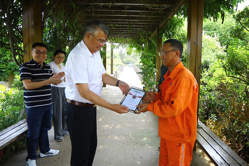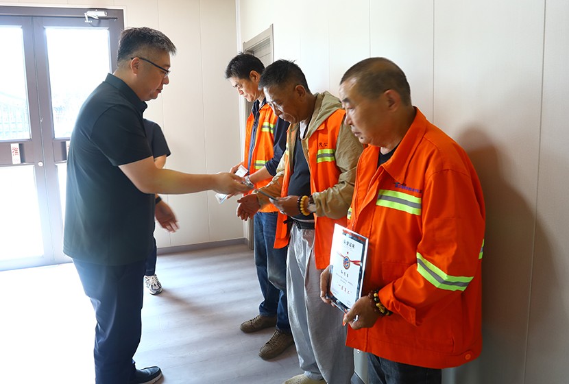 此次頒獎打破傳統(tǒng)集中表彰模式,將頒獎臺搬到生產建設最前沿,公司領導班子成員親自前往光伏安康驛站、創(chuàng)智綠園、大浦片區(qū)、云橋路施工現(xiàn)場、佟圩路施工現(xiàn)場、益豐園林園區(qū)6個一線點位,為獲獎員工頒發(fā)榮譽證書,并送上暖心祝福。當公司領導將“星級員工”證書遞到員工手中時,獲獎者難掩激動:“這份榮譽既是肯定,更是責任。我會繼續(xù)扎根基層,為臺北(華茂)貢獻全部力量!”