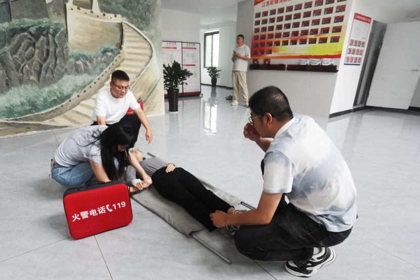 培訓中,連云港德安消防職業(yè)培訓學校資深教員王彥結(jié)合多年的工作經(jīng)驗和實際案例,細致地向大家開展了消防理論培訓,結(jié)合室內(nèi)外的消防設施的作用,系統(tǒng)講解了整個建筑消防系統(tǒng)的工作流程,介紹了應急疏散逃生的正確方法步驟;現(xiàn)場教學了消防護具穿戴、自救呼吸器使用;演示了簡易擔架制作、簡易包扎;著重示范了心肺復蘇以及海姆立克急救等。通過生動形象地講解,全體員工對消防安全知識有了更全面、更深入地了解。