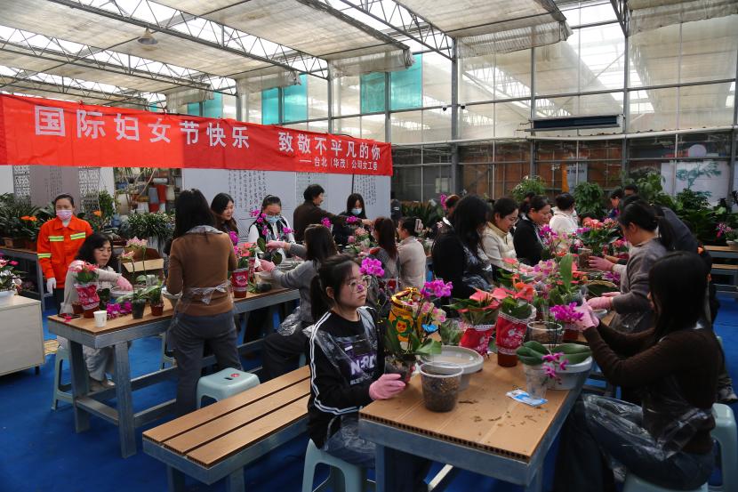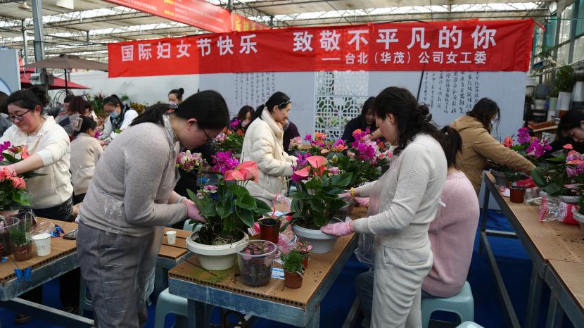? ? 情暖三月,巾幗芳菲相競妍。在“三八”國際婦女節(jié)來臨之際,為展現(xiàn)公司女干靚麗風(fēng)采,豐富文化生活,3月6日下午,臺(tái)北(華茂)公司工會(huì)組織50余名女職工代表在市振興花卉城開展“國際婦女節(jié)快樂 致敬不平凡的你”慶婦女節(jié)插花活動(dòng),展現(xiàn)新時(shí)代女性風(fēng)采。