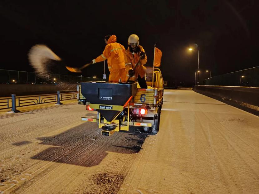 受寒潮影響,2月20日下午,港城普降“冰雪+冰?!?,投資公司第一時(shí)間啟動惡劣天氣應(yīng)急處置預(yù)案,道路保潔、市政養(yǎng)護(hù)、后勤保障等戰(zhàn)線的干部職工以雪為令,在重點(diǎn)區(qū)域、重點(diǎn)路段、坡道、橋梁、涵洞等結(jié)冰路段進(jìn)行撒鹽融雪融冰作業(yè),全力以赴除冰雪、防事故、護(hù)平安,為市民群眾出行一路“護(hù)航”。