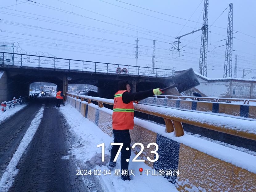 截至晚上22時,公司全員出動500余人次,大小機(jī)械100余臺(班),全力確保了轄區(qū)交通線暢通。