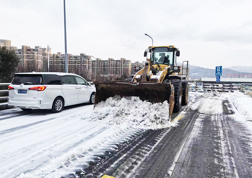 ? ? 此次掃雪除冰行動,采用人機結合方式,調(diào)派鏟雪車、裝載機等機械設備,對東方大道、黃海大道、花果山大道、242省道等主要干道人行便道、交叉路口,新海連大廈、火車站東站等重要地段的路面冰雪進行突擊清理;對各條干道的橋面及馬山立交橋、新光路下穿立交等坡度路面鋪灑氯化鈣除雪劑融化冰雪。