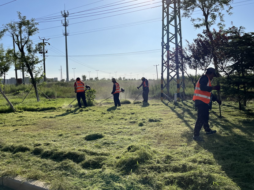 斗酷暑 陽(yáng)光很烈,他們很美。滾滾熱浪,高溫“烤”驗(yàn)。“炎”值爆表,室外溫度38℃,地表溫度飆升到50℃,城市像一個(gè)巨大的“蒸籠”,空調(diào)房里的人們望門(mén)止步。但是,有一群與太陽(yáng)肩并肩不服“暑”的鐵“汗”子,他們用黝黑皮膚擦亮奮斗的底色。你可以在小區(qū)里看到他們頭頂驕陽(yáng)找路徑、穿網(wǎng)線、做網(wǎng)絡(luò);可以在東方大道上看到他們冒著紫外線的灼烤,忙著栽種草苗、除草澆水;可以在大浦路上看到他們腳踩滾燙瀝青,忙著轉(zhuǎn)移交通桿;可以在花果山大道上看到他們汗流浹背,背著割灌機(jī)忙著打草。一件件浸透汗?jié)n的工裝,一句句樸實(shí)無(wú)華的話語(yǔ),一份份汗水淋漓的擔(dān)當(dāng)……翔立每位員工都在發(fā)揚(yáng)“特別能吃苦、特別能戰(zhàn)斗、特別能奉獻(xiàn)”的鐵軍精神,攥緊拳頭,埋頭苦干。