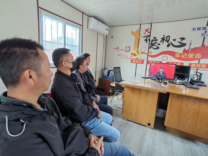 ? ? ? ??臺(tái)北投資公司廣大黨員干部群眾早早端坐在屏幕前,懷著激動(dòng)的心情,收聽(tīng)收看黨的二十大開(kāi)幕會(huì),認(rèn)真聆聽(tīng)習(xí)近平總書(shū)記所作的報(bào)告。公司領(lǐng)導(dǎo)王德志、楊善革、張海寧、卞霄以及各部門(mén)負(fù)責(zé)人在機(jī)關(guān)廉政會(huì)堂集中收看,各基層單位廣大黨員或在支部,或通過(guò)視頻會(huì)議,或在工作崗位休息間隙,收聽(tīng)收看開(kāi)幕會(huì)盛況。