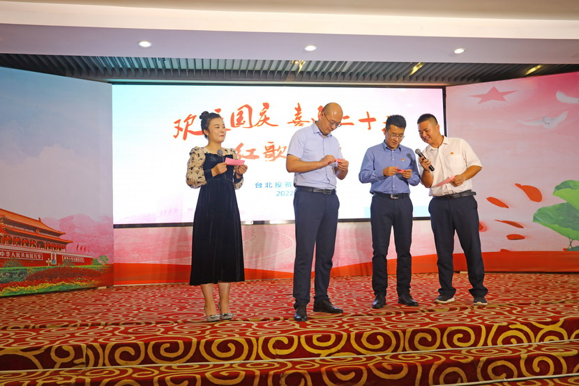 為慶祝新中國(guó)成立73周年,9月29日下午,臺(tái)北投資公司舉辦了“歡度國(guó)慶·喜迎二十大”紅歌傳頌會(huì),來(lái)自各直屬單位和機(jī)關(guān)廣大員工匯聚一堂,用最甜美的聲音歌唱祖國(guó)、用最真摯的詩(shī)詞贊頌祖國(guó),現(xiàn)場(chǎng)亮點(diǎn)頻現(xiàn)、精彩紛呈。