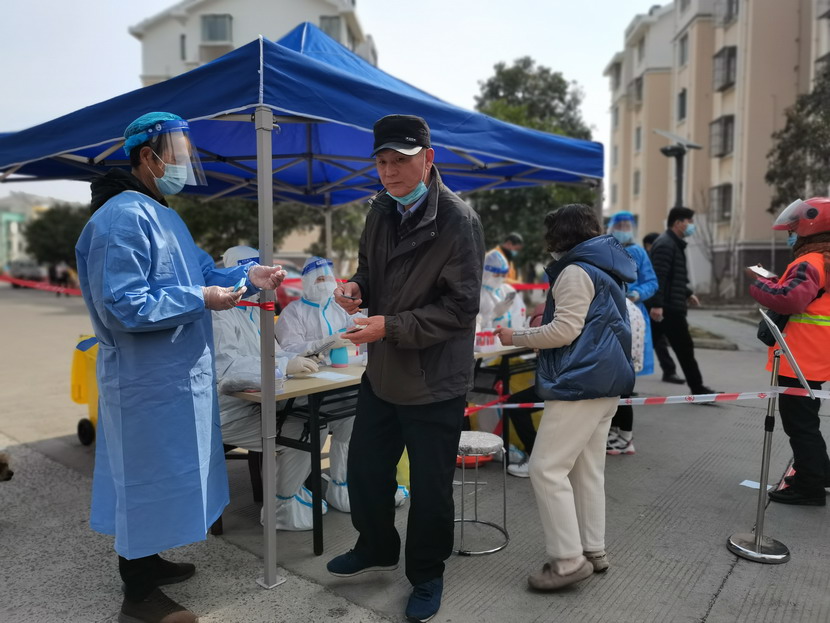 夜里9點(diǎn)40分,昌圩臨時(shí)黨支部抗疫工作群里信息不斷:“同志們,剛接社區(qū)緊急通知,明天要進(jìn)行第五輪核酸檢測(cè),還沒有睡的同志們請(qǐng)到社區(qū)緊急集合,又增加兩個(gè)檢測(cè)點(diǎn),抓緊去建點(diǎn)擺臺(tái)。” “霍正鋼收到、蘇玲收到、秦黎明收到、朱文健收到、邱榮濱收到、于洪亮收到……”,“好,晚上溫度比較低,請(qǐng)大家穿暖和一點(diǎn),10點(diǎn)社區(qū)準(zhǔn)時(shí)集合。”昌圩臨時(shí)黨支部書記李明發(fā)完最后一條信息,穿好馬甲,戴上口罩,出發(fā)下樓。