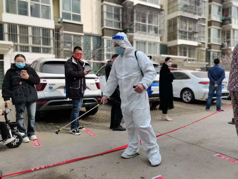 雖然地處開發(fā)區(qū),但是這個小區(qū)的防疫任務(wù)一點也不輕松,作為連云港最大的社區(qū)之一,昌圩社區(qū)由裕源、新城花小、昌圩湖三個小區(qū)組長,常住人口近3萬人,防疫責(zé)任重大,工作繁重。市委動員令下達之后,廣大黨員紛紛請戰(zhàn),在臨時黨支部帶領(lǐng)下,積極參加社區(qū)疫情防控工作。黨支部書記李明、紀檢委員于洪亮每天組織工作,檢查督導(dǎo),親自動手,掛標語、拉橫幅,積極宣傳疫情防控政策措施。臨時黨支部副書記蘇玲,每天五點多就得起床做飯,把兩個女兒先安頓好,她最小的女兒才一周歲,大女兒也不過才7歲,然后7點不到就穿上了志愿者紅馬甲,挨家挨戶通知核酸檢測。還有海州灣公司總經(jīng)理霍正剛堅持每天為小區(qū)進行環(huán)境消殺,內(nèi)退黨員孫芳成為“專業(yè)”核酸檢測員。在她們的感染下,廣大黨員、職工朱春年、夏軍、孫健、朱文健、孫銀、秦黎明、邱榮斌、伏彩保、韓永光,等等等等,紛紛走上前線。