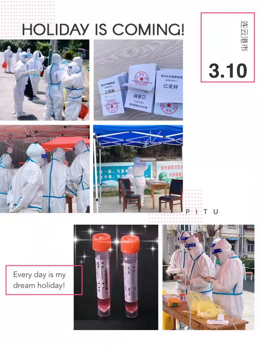 ▲海州區(qū)幸福路街道“最美大白”秦英(公司內(nèi)退黨員)在工作中