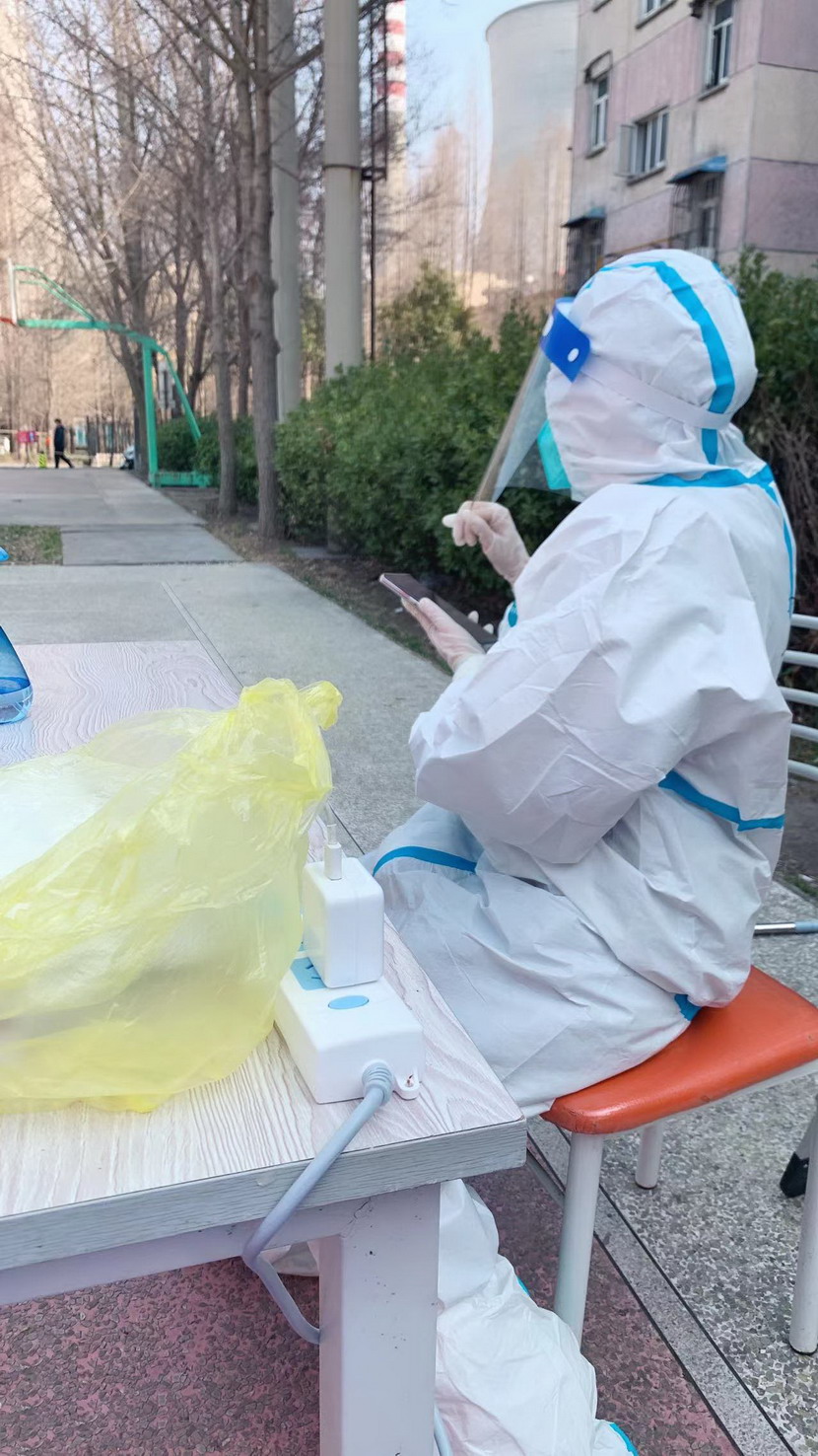 3月8日,臨時黨支部成立,黨員志愿者們隨即奔赴社區(qū)核酸檢測現(xiàn)場。當(dāng)天,志愿者們穿上防護服?!澳愫?,請戴好口罩,出示健康碼。”“你好,這邊人比較少,請往這邊走,保持一米距離?!本S持現(xiàn)場秩序、檢查健康碼、登記核酸個人信息……志愿者們堅守在各自責(zé)任區(qū),細心、耐心回答居民們的各類問題,忙得連喝水的時間都沒有。細致周到的服務(wù)、無私的奉獻精神,得到了社區(qū)居民們的一致認可和贊揚。