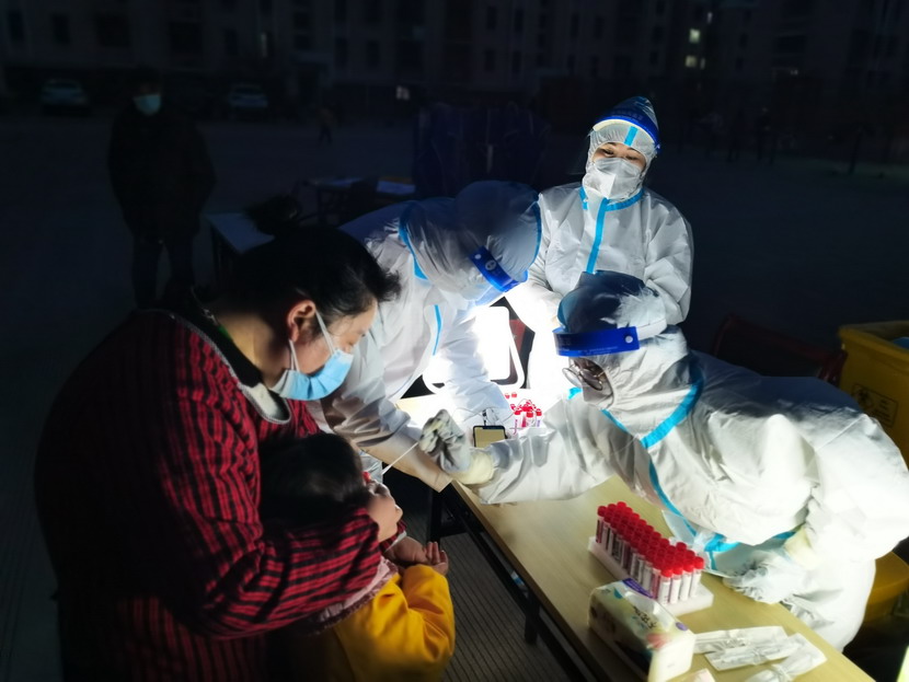 ▲昌圩社區(qū)臨時黨支部黨員志愿者與醫(yī)護人員一起工作到深夜