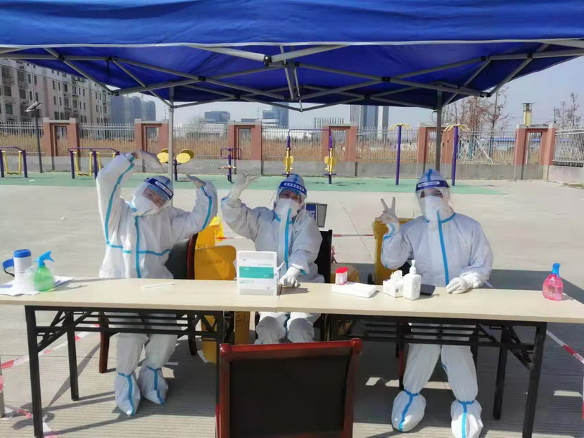 志愿服務(wù)篇。“現(xiàn)在我們是封控區(qū),不能出去給政府添亂,閑也是閑著,所以社區(qū)一招手我們就來了”這是臺北女工委副主任宋文靜的一席話。這波疫情來的突然,緊急核酸檢測緊缺志愿者服務(wù)。在公司”戰(zhàn)疫情、爭貢獻(xiàn)“主題實踐活動感召下,她已經(jīng)在小區(qū)擔(dān)綱核酸檢測志愿者有兩個夜晚了。而這一幕決不只在海州主城區(qū),在開發(fā)區(qū)昌圩社區(qū),臺北志愿服務(wù)隊已經(jīng)成為社區(qū)防疫主力。疫情伊始,臺北下屬海州灣公司黨支部一班人就已經(jīng)奮戰(zhàn)在社區(qū)防疫一線。黨支部副書記蘇玲、女工胡超,與專業(yè)醫(yī)護(hù)人員一道,穿上厚重防護(hù)服,直接站在核酸檢測最前線,這一站就是12小時。值班后稍作休息他們就又聯(lián)系總經(jīng)理霍正鋼,翔立黨支部副書記姜海洋,入黨積極分子朱文健等參與聯(lián)防聯(lián)控,擔(dān)當(dāng)疫情義務(wù)宣傳員。