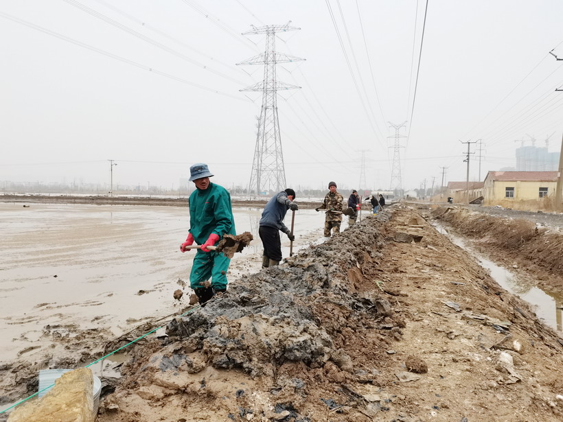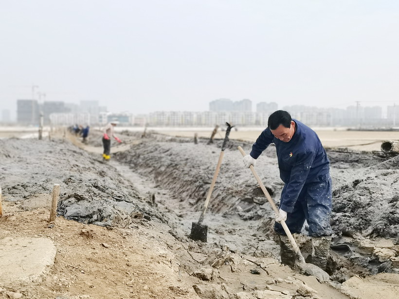 近日,迎著初春的風(fēng)走進(jìn)昌圩班組,在印有醒目“開局就是決戰(zhàn),起步就是沖刺”的橫幅下,退休黨員朱春年正帶領(lǐng)職工撩溝做堰,更換結(jié)晶池塑料布等。兩鬢斑白的朱組長士氣毫不減當(dāng)年,一邊忙一邊說:“昌圩結(jié)晶池因?yàn)┕ち袒妮^嚴(yán)重,冬準(zhǔn)工程量大,為了能完成公司冬準(zhǔn)計(jì)劃,我們把海濱、程圩職工都抽調(diào)過來了,過年都在干活,目前這邊1000畝結(jié)晶池已經(jīng)完成,春節(jié)期間灌了一部分,現(xiàn)在天時(shí)好,我們得抓緊時(shí)間,早灌池,早落鹽!你們自己轉(zhuǎn)轉(zhuǎn)、看看吧,我實(shí)在太忙了····”。