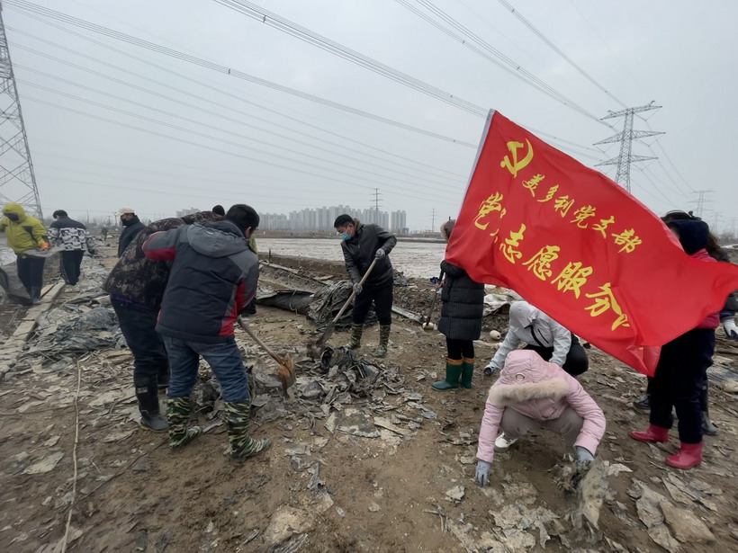 寒風(fēng)中,志愿者們忙碌在鹽灘上,充分發(fā)揚不怕累、不怕臟的精神,對附近區(qū)域的垃圾、雜物進行清理。經(jīng)過一個下午的辛勤勞動,共清理廢棄的塑布、木板等雜物十余車,用行動和汗水,扮靚了鹽場人的家園。