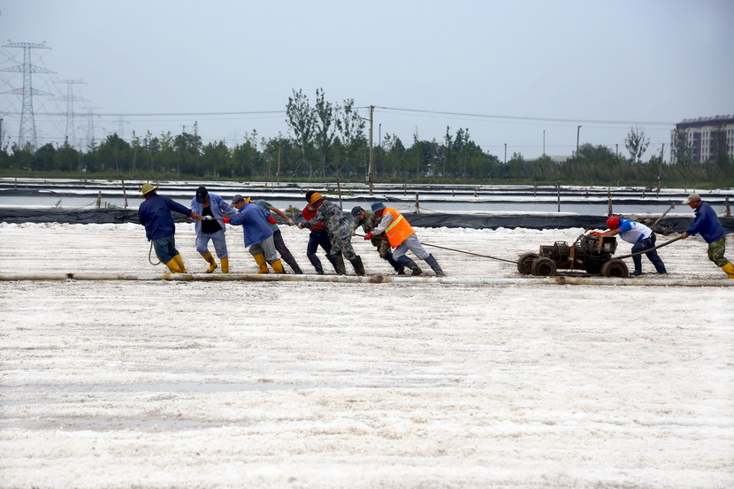 今年以來,針對政府征地、堿廠關停的現(xiàn)實,投資公司積極推進生產方式變革,打破一年兩季固有收鹽模式,實現(xiàn)原鹽隨用隨收。在海州灣先鋒東灘扒鹽一線,王德志仔細觀看了作業(yè)情況,現(xiàn)場收鹽職工正在進行挪機工作。