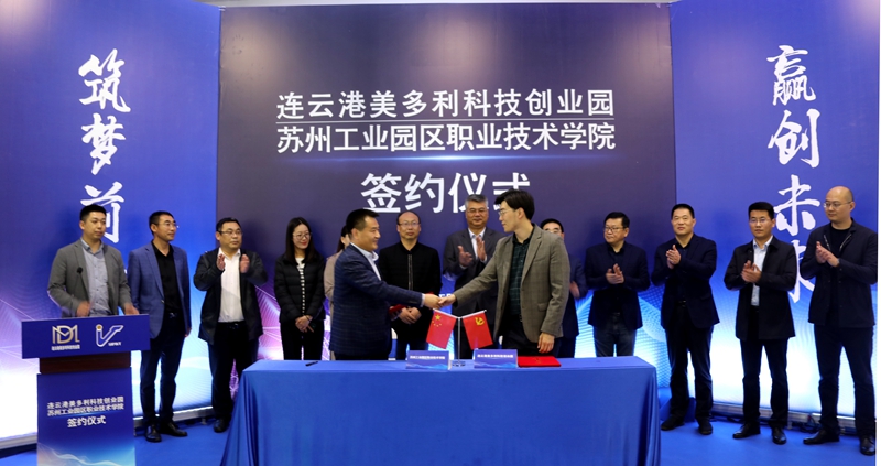 5月11日,投資公司美多利科創(chuàng)園與蘇州工業(yè)園區(qū)職業(yè)技術(shù)學(xué)?!爱a(chǎn)教融合”項目簽約儀式在“??汀北妱?chuàng)空間隆重舉辦。開發(fā)區(qū)教育工委委員、社會事業(yè)局教育處處長劉益國等領(lǐng)導(dǎo),蘇州工業(yè)園區(qū)職業(yè)技術(shù)學(xué)院繼續(xù)教育學(xué)院院長魏剛等校方代表,投資公司全體領(lǐng)導(dǎo)班子,美多利公司全體領(lǐng)導(dǎo)班子參加了簽約儀式。