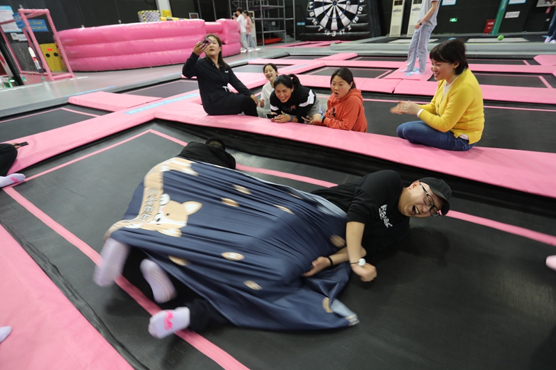 團(tuán)建活動中,兩個隊伍的成員通過頭腦風(fēng)暴為自己的隊伍分別取名為“黛玉隊”和“寶釵隊”,分別由看起來比較柔軟實際也很柔軟的王茜和看起來很有力量,實際也很有力量的宋文靜帶領(lǐng)。大家喊出來鼓舞人心的口號,簡單的取名、口號環(huán)節(jié)起到了破冰的作用,瞬間拉近了隊員之間的距離。拓展訓(xùn)練中,青年們共同配合,迎難而上,大膽挑戰(zhàn)自我,“重走長征路”、“黨史60秒”、“四平八穩(wěn)”等緊張激烈的對決中,每個團(tuán)隊齊心協(xié)力攻克了一個個最初認(rèn)為不可能完成的項目,共同分享了成功的喜悅和挑戰(zhàn)的激情,充分地體會到了團(tuán)隊信任、合作共贏、換位思考、永不言敗的重要意義,圓滿完成了拓展訓(xùn)練任務(wù)。