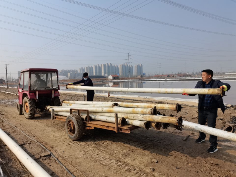 東灘現(xiàn)有長(zhǎng)鹽格塊10塊,共計(jì)600公畝,預(yù)計(jì)出鹽量6000噸。為了在征收前,實(shí)現(xiàn)公司利益最大化,鹽池里不留一粒原鹽,海州灣公司多次召開(kāi)生產(chǎn)骨干會(huì)議,研究部署,合理安排扒鹽時(shí)間,決定先人工扒東灘二班4塊鹽池,余下6塊鹽池利用春季有利天時(shí)繼續(xù)長(zhǎng)鹽,在土地征收前的最后一個(gè)月,突擊搶扒,做到顆粒歸倉(cāng)。本次東灘預(yù)計(jì)扒鹽時(shí)長(zhǎng)一周,出鹽量2500噸。