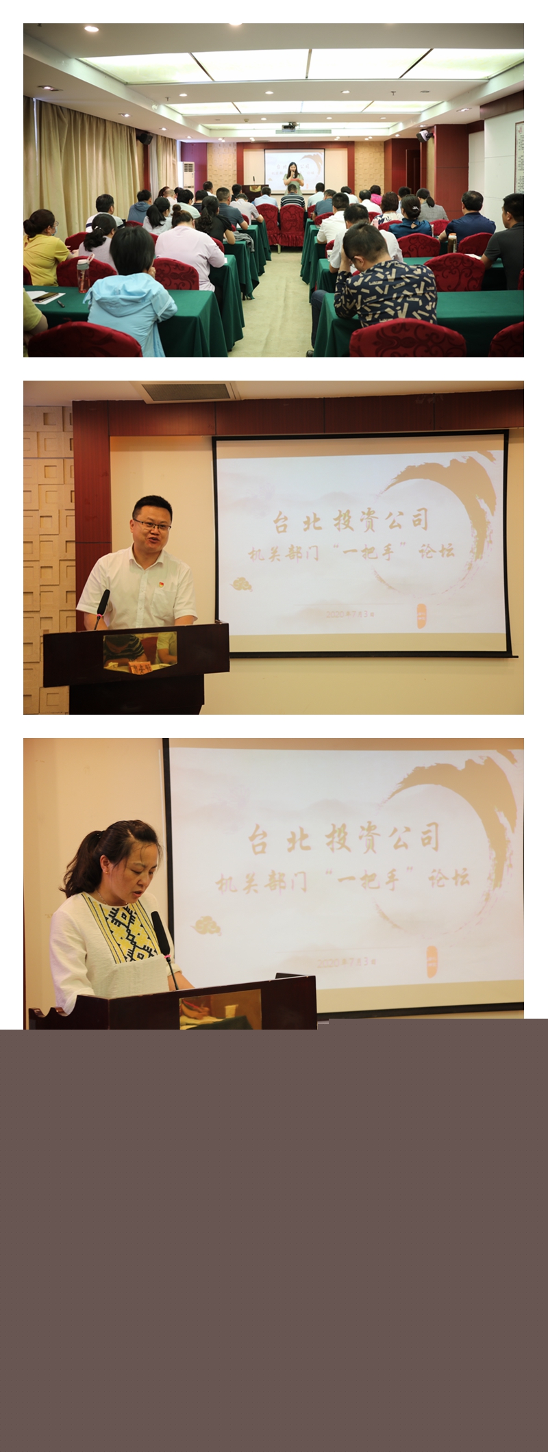 7月3日下午,投資公司在九樓會議室舉辦臺北大講壇——部門“一把手”專場,來自機關(guān)部門的八位同志走上講臺,談心得,談想法,談思路,談措施。公司領(lǐng)導(dǎo)、各單位黨政負(fù)責(zé)人、機關(guān)部門部分人員參加了講壇。本次講壇由各基層單位主要負(fù)責(zé)人作為評委。
