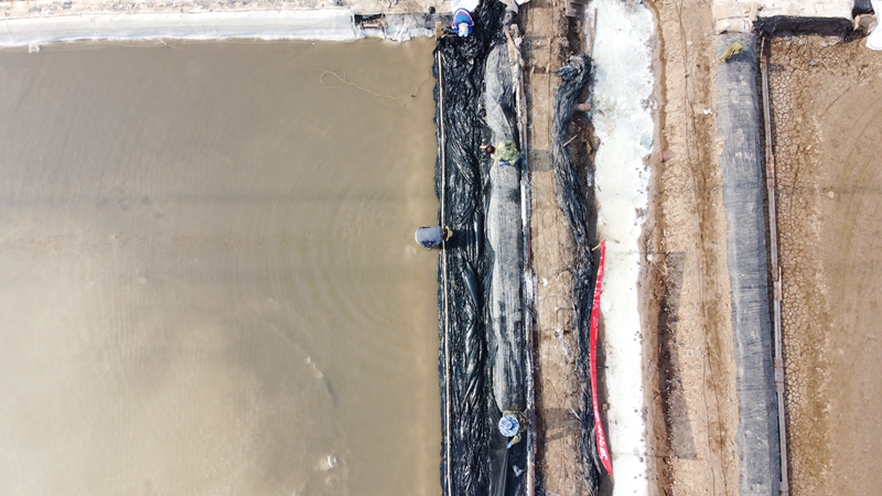 不到半天時(shí)間完成了數(shù)百米的塑布安裝