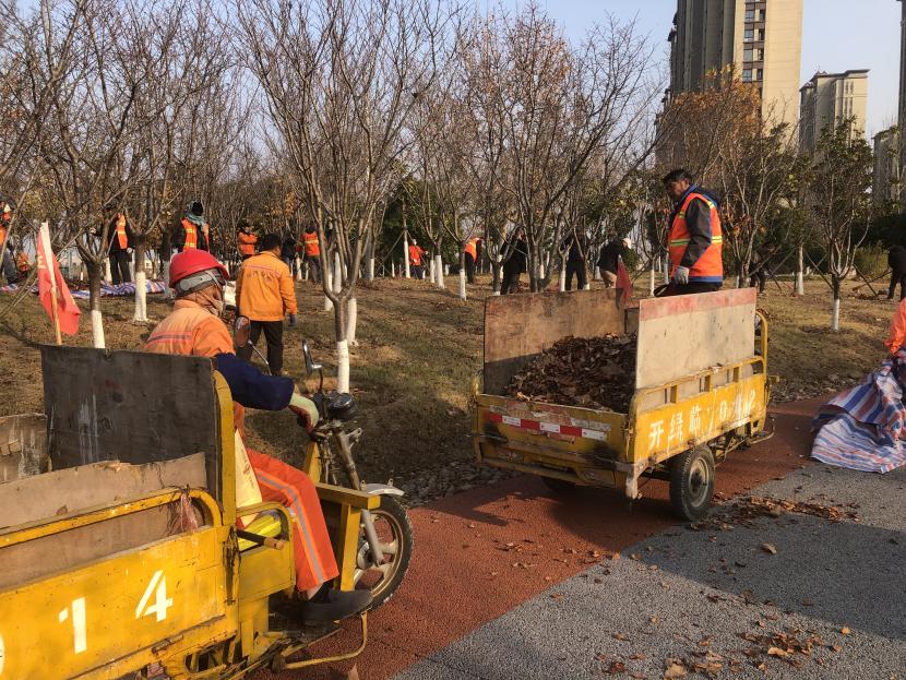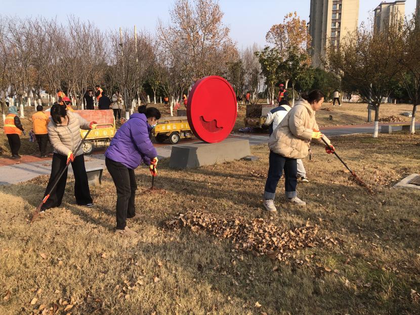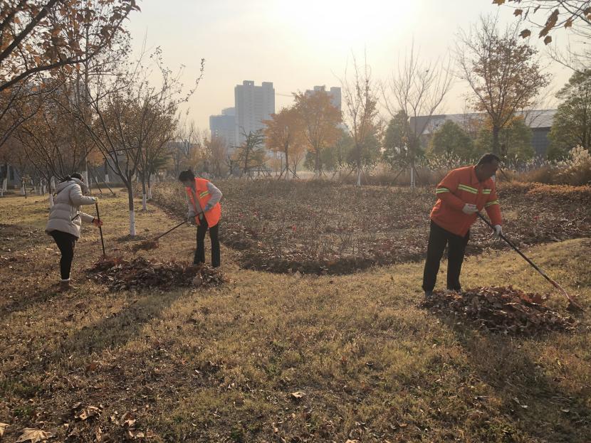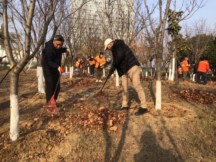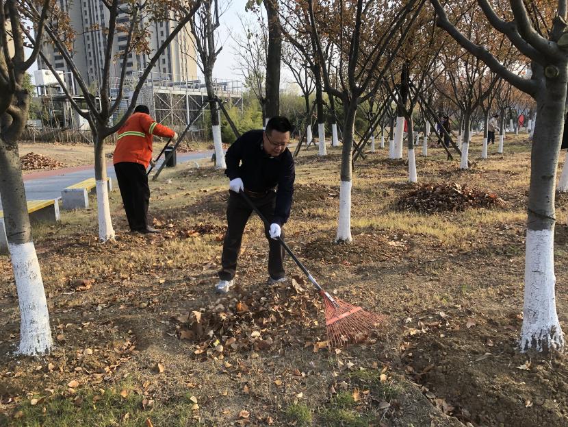 活動(dòng)現(xiàn)場(chǎng),黨員同志、積極分子分為兩撥,分別從創(chuàng)智綠園北門(mén)和東門(mén)對(duì)園內(nèi)雜草落葉進(jìn)行清除。在戴好手套,做好防護(hù)、防凍措施的同時(shí),紛紛拿著掃帚、耙子等工具,統(tǒng)籌安排、分工勞作,齊心協(xié)力,有的用掃帚掃落葉、有的用袋子裝落葉、有的用耙子摟落葉……大家忙得熱火朝天,充分發(fā)揚(yáng)不怕臟、不怕苦、不怕累的黨員先鋒本色,創(chuàng)智綠園內(nèi)處處是同志們清理雜草落葉的身影,構(gòu)成了一道亮麗的風(fēng)景線(xiàn),經(jīng)過(guò)一個(gè)多小時(shí)的辛勤勞動(dòng),兩撥隊(duì)伍順利“會(huì)師”,沿途雜草落葉被清理得干干凈凈,公園環(huán)境也得到明顯改善。