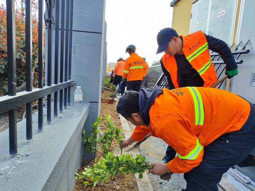 活動現(xiàn)場,在支部書記范曉寶的帶領(lǐng)下,大家熱情高漲、干勁十足,呈現(xiàn)一派繁忙的勞動景象。勞動中,大家兩兩一組,揮鍬鏟土、扶苗填坑、踏土夯苗,干凈利落,一氣呵成。黨員干部率先垂范,發(fā)揚不怕臟不怕累精神。經(jīng)過一上午的辛勤勞動,一株株新栽的花草苗木迎風(fēng)而立,栽植的932株毛鵑、1384株黃楊在春風(fēng)中展現(xiàn)勃勃生機,形成了一道綠色靚麗的風(fēng)景線。