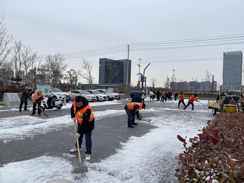 ? ? “風(fēng)雪無(wú)情 志愿有愛”。活動(dòng)中,大家不顧凜冽寒風(fēng),積極除雪、干勁十足,有的用鐵鍬鏟除冰塊,有的用掃帚清掃積雪。鐵鏟、掃帚與地面的摩擦聲此起彼伏,譜寫了悅耳動(dòng)聽的清脆樂曲。志愿者一鐵鍬、一笤帚將積雪推至路邊,經(jīng)過(guò)連續(xù)奮戰(zhàn),園區(qū)內(nèi)路面積雪得到及時(shí)清理,通行逐漸恢復(fù)順暢。