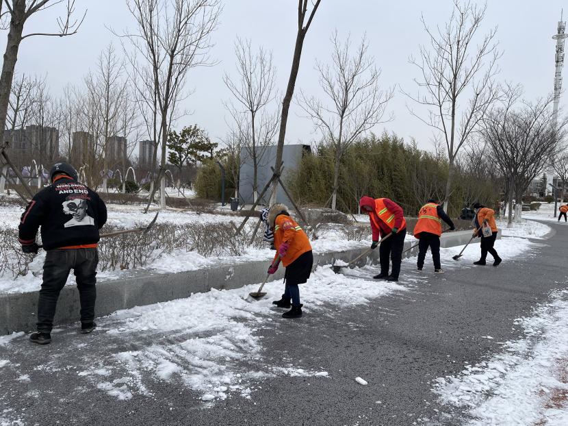 ? ? 此次鏟冰除雪行動(dòng)仍在進(jìn)行,鏟的是責(zé)任,暖的是人心。經(jīng)過(guò)志愿者的共同努力,園內(nèi)的積雪情況得到有效緩解。一條條整潔的道路給群眾送去的不僅是方便和安全,更是一份溫暖和正能量,志愿精神讓這份溫暖在大雪中不斷蔓延。