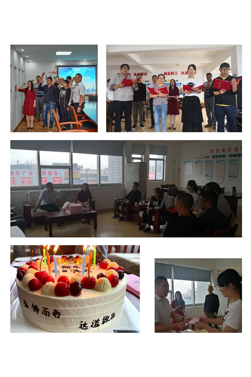 書記致辭。為黨員同志送上暖心祝福話語,向職工群眾提出爭先奮進希冀,替臨達公司樹立更進一步目標(biāo)。重溫誓詞。進一步增強黨性,牢記黨的宗旨,恪守黨的紀(jì)律,堅定理想信念,充分發(fā)揮先鋒模范作用。贈送賀卡。書記親手為黨員同志們制作賀卡、寫下寄語,送到黨員同志們的手中。集體誦讀。全體職工高聲朗誦了詩詞《我的祖國》,激發(fā)愛國熱情,陶冶愛國情操。活動最后,公司工會為職工精心準(zhǔn)備了豐盛的生日餐,讓職工深深體會到來自“娘家人”的溫暖。