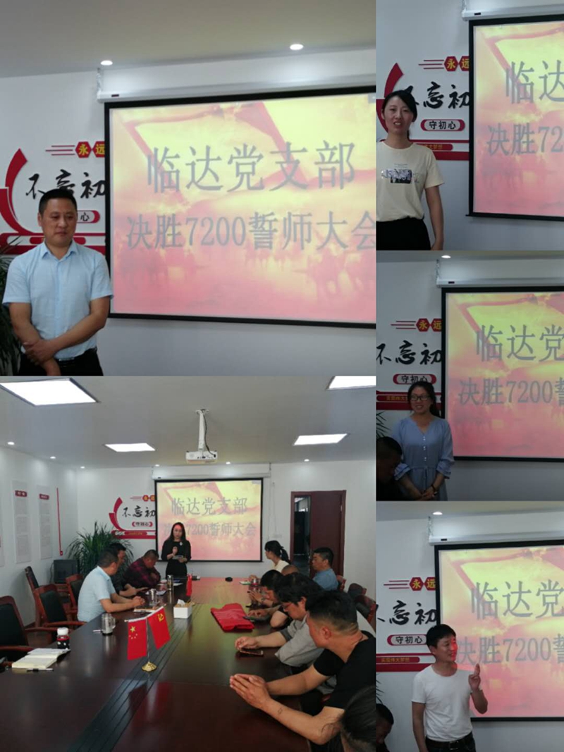 為堅決打贏“萬平資產(chǎn)租賃”戰(zhàn)役,進一步堅定信心,咬緊目標,5月21日下午,臨達黨支部召開“決勝7200”主題黨日活動。