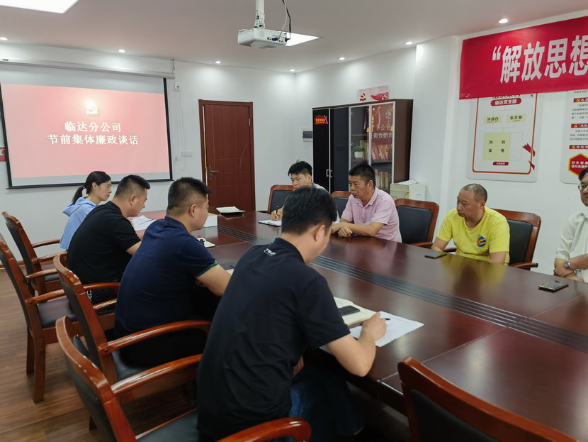 ? ? 中秋、國(guó)慶將至,為切實(shí)深化節(jié)日期間作風(fēng)建設(shè),進(jìn)一步強(qiáng)化廉潔自律意識(shí),筑牢防腐拒變防線。9月6日上午,臨達(dá)分公司開(kāi)展節(jié)前集體廉政談話。