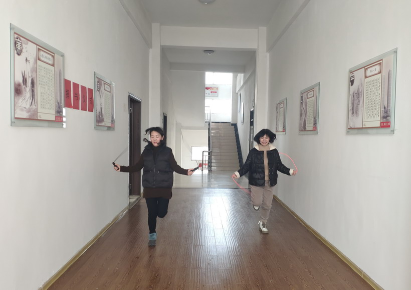 跳繩比賽兩人一組,用最短的時(shí)間跳到終點(diǎn)者勝利。只見(jiàn)他們用一次次律動(dòng)的跳躍動(dòng)作,挑戰(zhàn)著自己的力量和耐力,盡情“繩”采飛揚(yáng),跳出精彩。