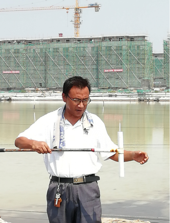 雖然復(fù)曬灘的日常工作很繁重,但在翔立承接的市政工程突擊中,他都會抽空積極參加。為了工程施工和鈣液生產(chǎn)兩不誤,經(jīng)常白天參加市政工程施工,晚上打著手電到復(fù)曬灘調(diào)鹵走水,給班組人員做好表率,發(fā)揮積極帶頭作用。