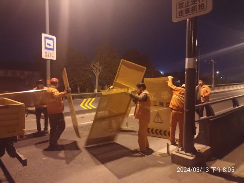 通過3個多小時的連續(xù)作業(yè),順利完成馬山立交橋兩側(cè)圍擋安裝工作,為城市按下了“安全”鍵。