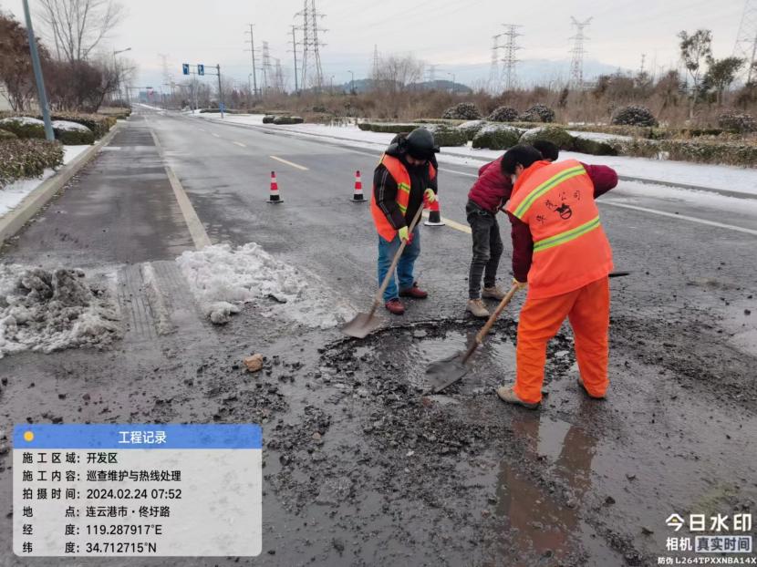由于連續(xù)的暴雪席卷港城,使轄區(qū)道路路面遭受不同程度的凍害,出現(xiàn)坑塘、裂縫等情況,給群眾出行帶來安全隱患。盛達(dá)市政分公司于22日開始,晨起早、晚加班,開展雪后道路排患工作,快速處理雪后各項(xiàng)道路病害問題,為道路通行安全提供有力保障。