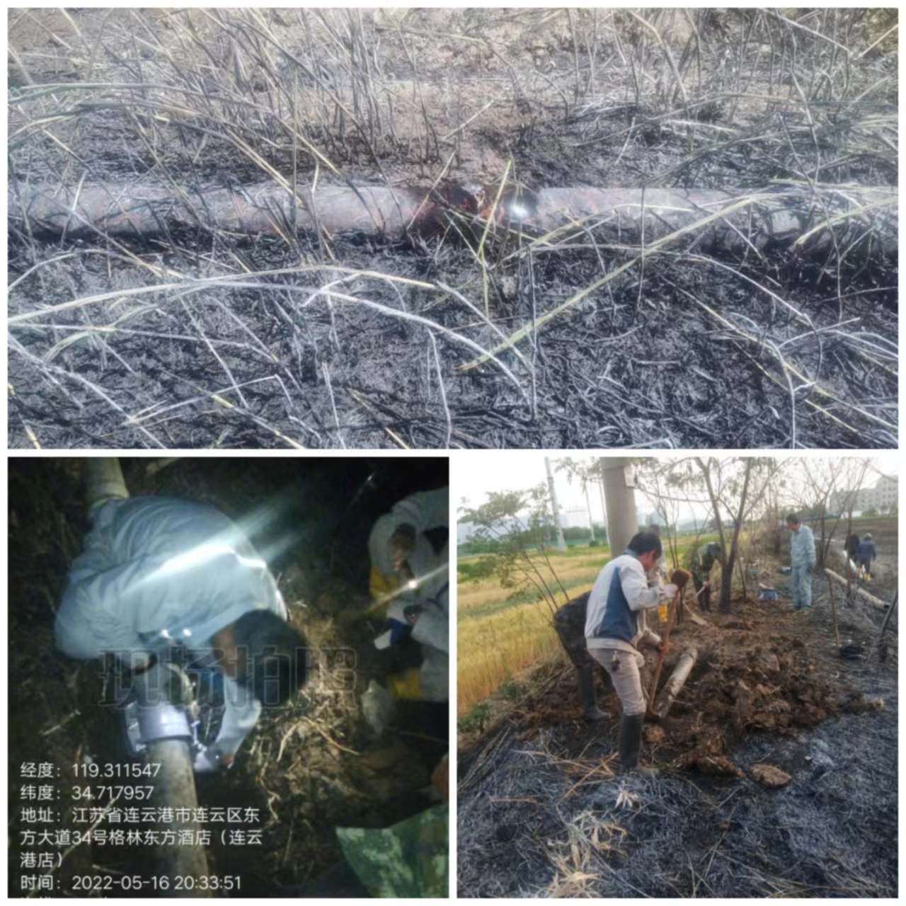 5月16日中午12點半左右,東方大道與新光路交叉處蘆葦蕩突發(fā)大火,海州灣公司近300米礦鹵管道正埋于此處。大火發(fā)生后,管道突發(fā)性爆裂,導(dǎo)致昌圩班組不能正常灌池,公司立即組織十余名搶修人員,迅速集結(jié)奔赴現(xiàn)場,火速開展搶修工作。