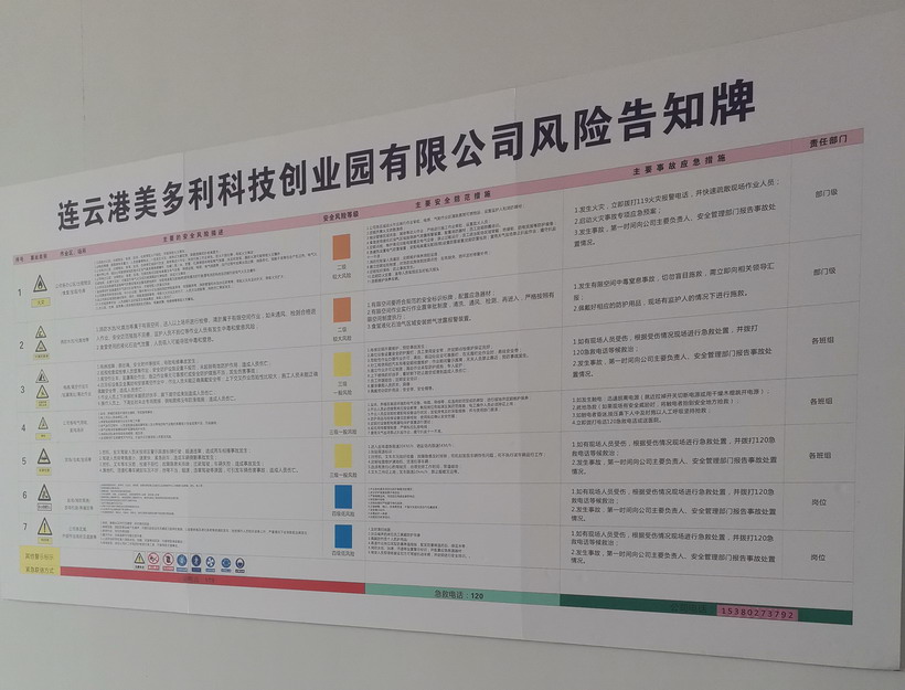為進(jìn)一步提升美多利公司安全管理水平,切實推行風(fēng)險分級管控與隱患排查治理雙重預(yù)防機(jī)制試點(diǎn)工作。近日來,美多利公司組織全體員工開展雙重預(yù)防機(jī)制教育培訓(xùn)。另外,對美多利公司消防泵房、特種設(shè)備等重點(diǎn)區(qū)域進(jìn)行風(fēng)險分級管控點(diǎn)檢,并對各個區(qū)域張貼崗位風(fēng)險分級管控告知卡。