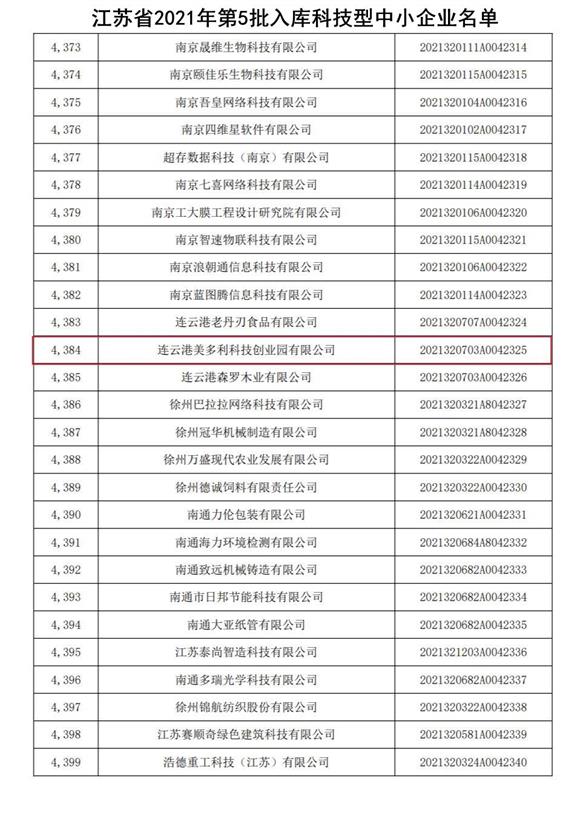 美多利入選2021年國家科技型中小企業(yè),入庫登記編號為2021320703A0042325。