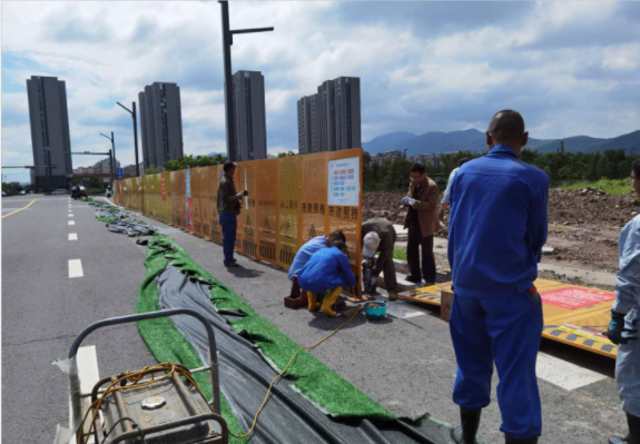昨日,受大風(fēng)天氣影響,東晉路上的隔離欄傾倒,該路段恰好處于市創(chuàng)文創(chuàng)衛(wèi)的巡檢路線上。當(dāng)天晚上接華茂公司通知,翔立分公司鐵軍“臨危受命”,承接圍欄搶修復(fù)原固定工程,共有18名員工早上6點(diǎn)冒著蒙蒙細(xì)雨在施工現(xiàn)場投入搶修,大理石路牙石背面用膨脹螺絲焊接一一將隔離欄用支撐架固定,該工程限期在兩日內(nèi)完工。
