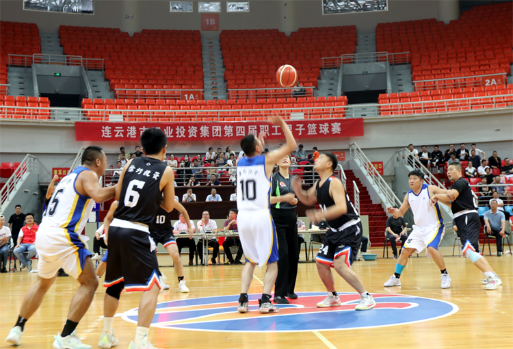 “加油!加油”。伴隨著拉拉隊(duì)整齊嘹亮的吶喊聲,徐圩投資公司與灌西投資公司男籃之間的冠軍爭奪賽拉開了序幕。
