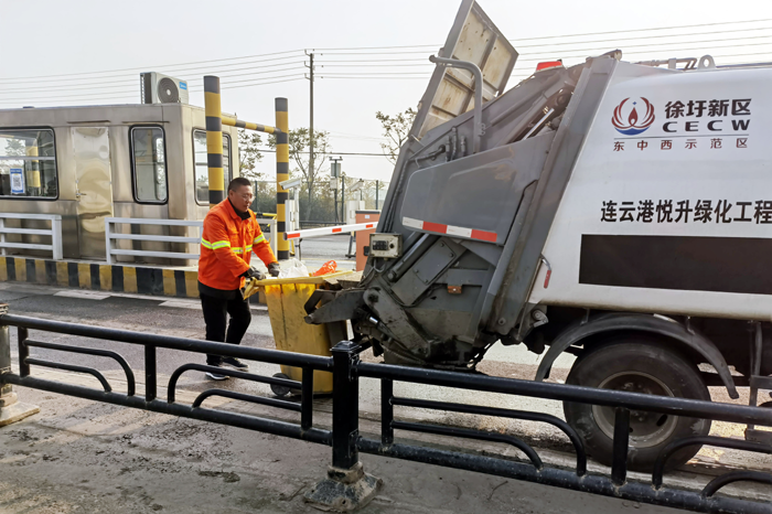 徐圩新區(qū)地域面積較大,廠區(qū)單位分布分散,形成集中清運(yùn)點(diǎn)之間的跨度大、距離遠(yuǎn),從最東端的虹洋港口到最西端242省道邊的人文園,兩點(diǎn)相距就有15公里之多,面廣量大。為及時(shí)高效完成垃圾清運(yùn)工作,羅海軍每天凌晨4點(diǎn)他對(duì)作業(yè)車輛進(jìn)行仔細(xì)檢查,隨后召開班前會(huì)議,他倡議全班工作人員:“吃在車上,干在路上?!睜幏謯Z秒,確保工作完成更到位、更扎實(shí)。