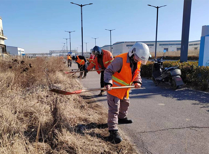 數(shù)九寒冬,滴水成冰。連日來,為延伸拓展打造園區(qū)樣板路提升擴(kuò)建工程,保潔分公司因地制宜,制定道路整治方案,強(qiáng)化分工、明確責(zé)任、全力以赴吹響園區(qū)樣板路工程沖鋒號(hào)角,樣板路創(chuàng)建工作景象再度“升溫”,道路沿線處處展現(xiàn)敬業(yè)辛勤勞作場(chǎng)面。