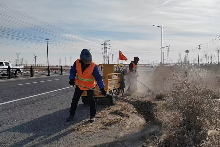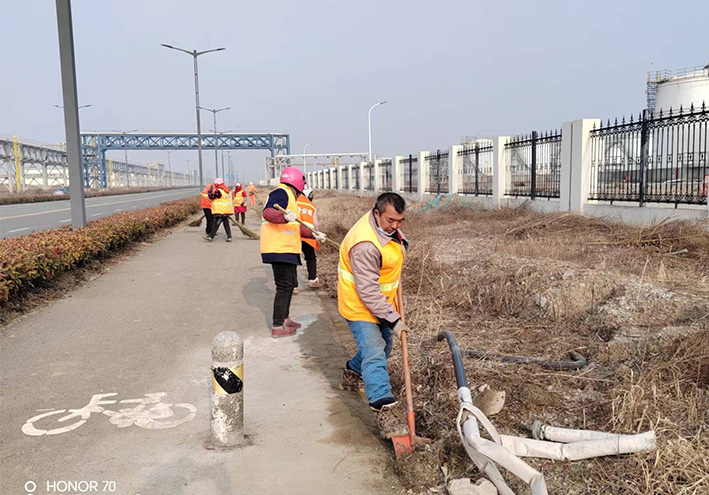 該分公司注重細(xì)節(jié),不斷強(qiáng)化突擊治理成效,第一時(shí)間策劃保潔方案。園區(qū)兩個(gè)班組35名保潔員工在公司統(tǒng)一指揮下,步調(diào)一致,無懼三九嚴(yán)寒低溫天氣,兩人一對(duì),三人一組,舞動(dòng)掃把,清掃輔道泥土雜草;勞動(dòng)現(xiàn)場(chǎng),黨員先鋒無處不在,石峰、朱海勇、楊靜等同志,身背幾十斤重打草機(jī)械,盡管汗水浸濕橙色衣衫,累得腰酸背痛,無所怨言,仍然擺動(dòng)雙臂,經(jīng)過近三天的努力奮戰(zhàn),收割石化三道、十道、復(fù)堆河路牙,輔道雜草3000多米長,清理管廊、取水點(diǎn)隱藏各類白色垃圾400多包,轉(zhuǎn)運(yùn)20余車,人工清掃路面2000多米長。
