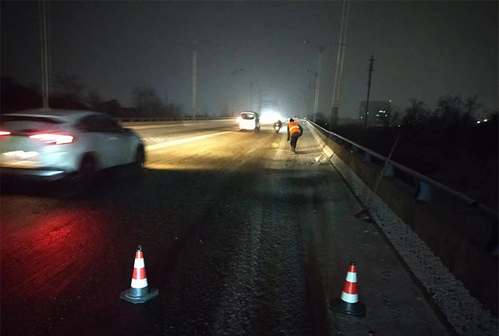 保潔分公司拉網(wǎng)式對(duì)新區(qū)所有道路進(jìn)行大排查,結(jié)合道路實(shí)況,第一時(shí)間組織人員對(duì)徐圩核心區(qū)域,石化園區(qū)人行輔道,小型橋梁岔路口積雪進(jìn)行人工清掃,共清掃人行輔道長達(dá)3000多米長,清理岔路口冰凍泥塊20多車,處理雪化積水路段50多處,為雪后新城道路環(huán)境美麗整潔而戮力奮戰(zhàn)。(楊波)