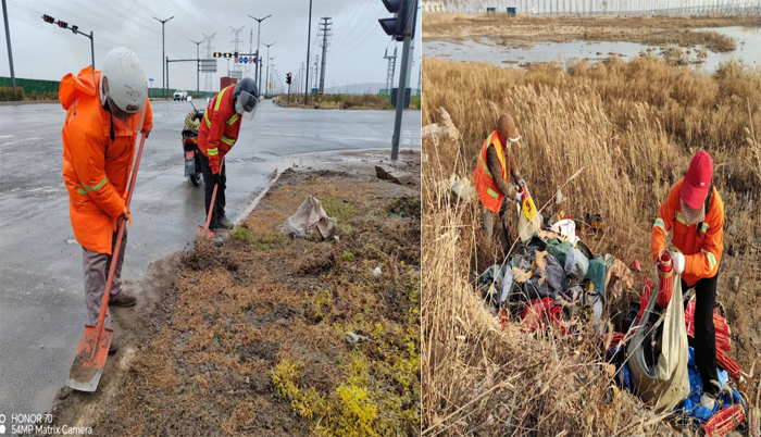 ? ? ? ?12月9日--10日雙休期間,為高質高效完成鹽城市考察團蒞臨徐圩石化園區(qū)活動道路保潔工作。保潔分公司全員上下齊心協(xié)力,忘我工作,戮力奮戰(zhàn)道路一線,風雨中盡顯敬業(yè)勞動風采。
