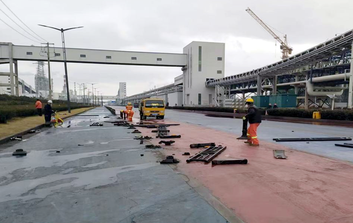 ? ? ? 12月10日上午10點左右,徐圩新區(qū)石化三路和蘇海路接連發(fā)生兩起交通事故,造成20余節(jié)護欄被撞壞,市政分公司值守人員立即組織職工前往維護,杜絕二次事故發(fā)生。