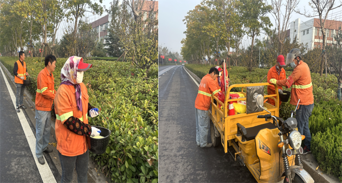 ? ? ? 工作中,班長李洪利、副班長李明春,帶領綠化班組30余人,對云港路、祥和路仁和路,進行施肥作業(yè)。“園林衛(wèi)士”手拿施肥工具,2-3人為一小組,采用徒步拋灑方式進行作業(yè),縱三路的側分帶雪松,因長勢不良土壤環(huán)境因素,為重點施肥對象。云港路路線較長,采取分段作業(yè),重點突破。經過一天的忙碌,完成既定路段的施肥任務。