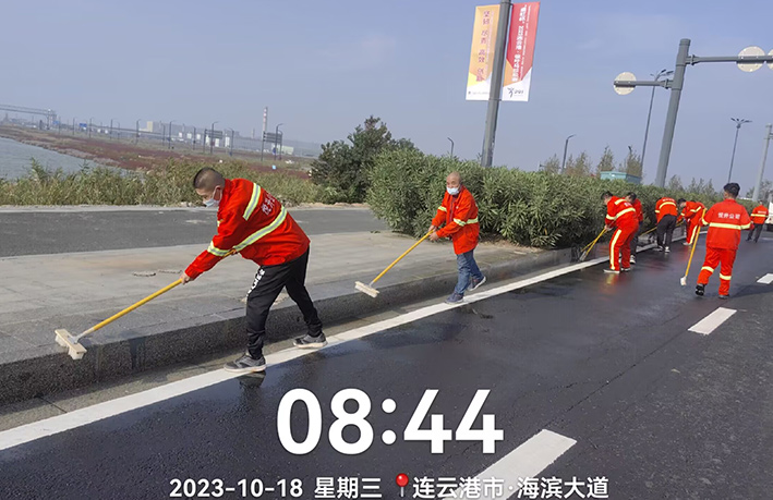 10月18日上午,悅升公司機(jī)關(guān)管理人員深入一線對(duì)海濱大道南卡口至疏港大道路段及橋梁路緣石進(jìn)行強(qiáng)化清洗,用實(shí)干打好賽道保障“戰(zhàn)役”。工作現(xiàn)場(chǎng),一臺(tái)高壓沖洗車先行對(duì)賽道路緣石和橋梁輔道進(jìn)行高壓沖洗,隨后,工作人員一字排開,用毛刷不斷擦洗地面頑固臟污,大家斗志昂揚(yáng)、步步推進(jìn),做到?jīng)_洗無漏洗、無死角,最后再用灑水車清洗一遍。經(jīng)過近三小時(shí)清洗,高標(biāo)準(zhǔn)完成路源石和橋梁輔道保潔清洗工作,有效提高了賽道潔凈度。截至目前,已完成該路段2000多米路緣石清洗工作。