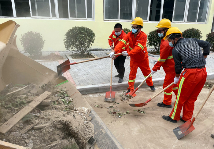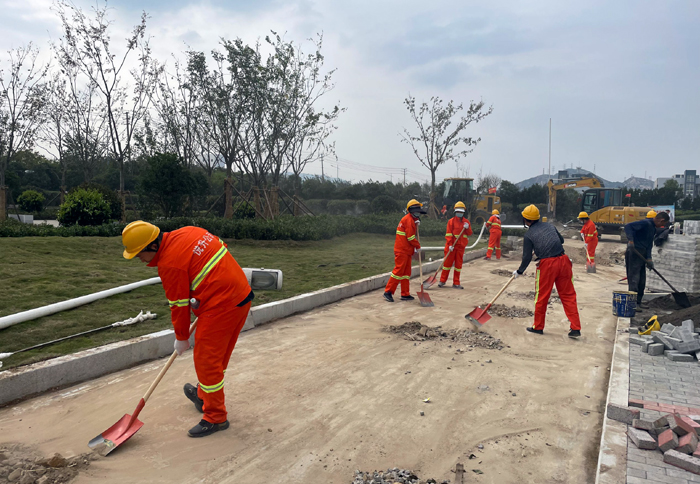 面對繁重工作量,為了切實(shí)加快施工進(jìn)度,悅升公司黨員干部主動請纓要求到一線與大家共同奮戰(zhàn)。“不要急,要嚴(yán)格施工流程,確保工程質(zhì)量達(dá)標(biāo)……”該公司負(fù)責(zé)人馮如師邊說邊邊將工程垃圾裝運(yùn)到車上。截止當(dāng)前,該公司班子成員帶領(lǐng)機(jī)關(guān)工作人員堅守陣地,持續(xù)工作了17日。為確保高質(zhì)高效完成各項工程任務(wù),大家“白加黑”晝夜不間斷的全力奮戰(zhàn),已完成瀝青路面攤鋪1.7萬m2、園路鋪設(shè)3000m2、路緣石安裝1660m、樹池圍牙砌筑1136m、更換下水道篦子130塊……各項工程任務(wù)完成接近尾聲。