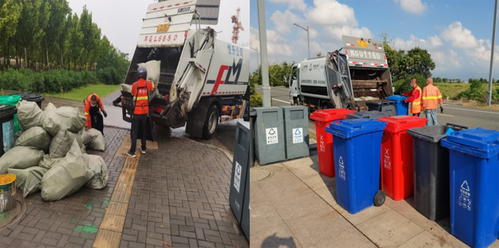 節(jié)日期間,環(huán)衛(wèi)分公司每天出2輛清運車輛,隨車4名環(huán)衛(wèi)推桶工人、2名駕駛員,對徐圩新區(qū)住宅小區(qū)、企業(yè)(單位)及公共地段60個垃圾收集點的440個垃圾分類桶、200個果皮箱及400個垃圾包進行清收。每日清收垃圾約20余噸,并及時將垃圾轉運到垃圾中轉站。